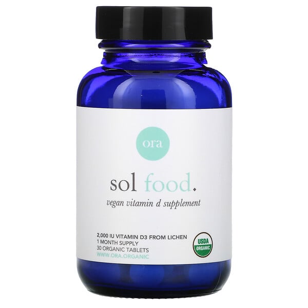 Ora, Sol Food, Vegan Vitamin D3 Supplement, 2,000 IU, 30 Organic Tablets